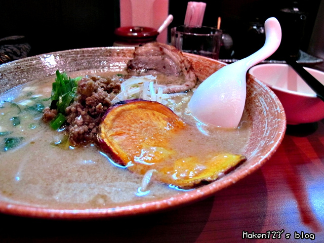 我點的是九州口味的味噌拉麵,配的是炸紫皮地瓜!