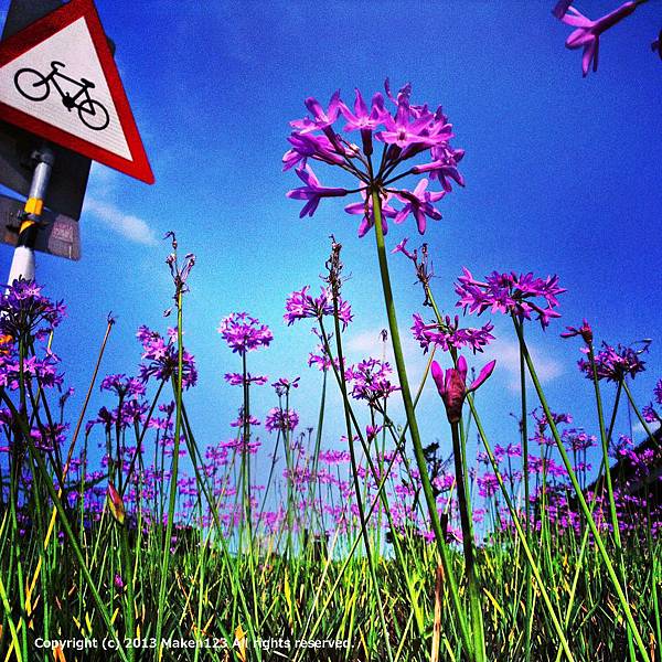 春神來了~花知道!自行車道經過一星期雨水滋潤,開滿滿漂亮的花,冷冷的冬天,終於正式向今年說再見。艷黃的向日葵,寶藍的天空,翠綠的小草, 和數百種數千萬種綠色組合的樹樹們,大自然果然是最佳療癒性偶像~^^