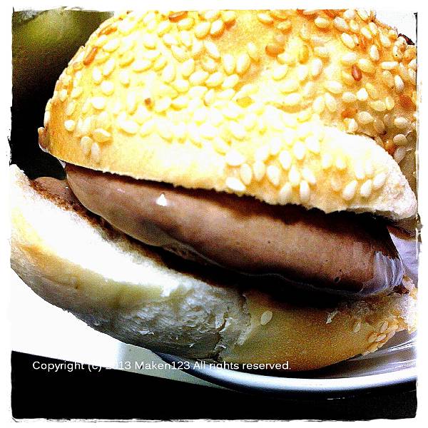 肯先生跟著一起不知吃下多少這個甜漢堡>O<~
