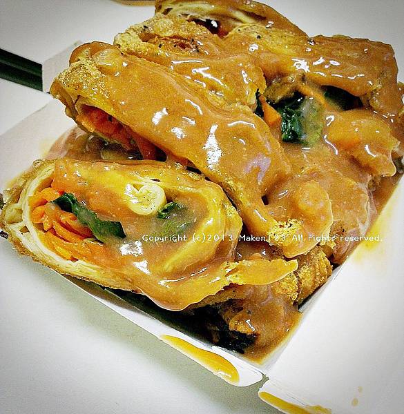 多層次的豆皮包著蔬菜和紅蘿蔔絲,
